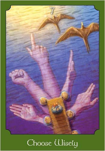 This card comes forth when you may have a vision or goal that you want to achieve, but too many choices, scattered energies, and unrealistic expectations prevent you from attaining what you desire. Opportunities are bountiful but theres a choice to be made at this time. This card reminds you that the choices that are around you now may appear to have all the control and power - but in reality, youre in control and responsible for all the choices you make.